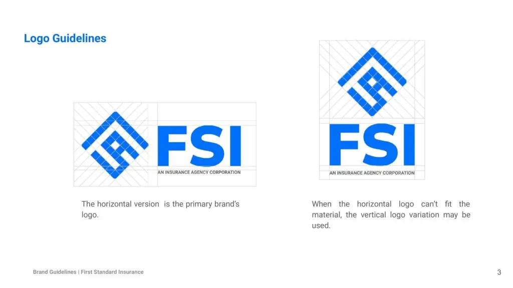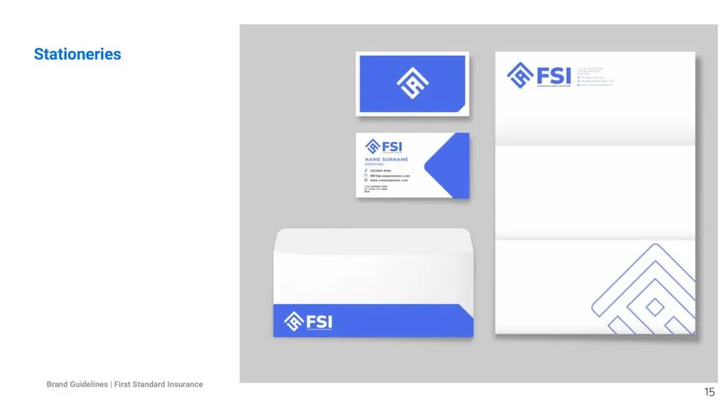 We delivered a full brand system, from a flexible logo and brand manual to typography, iconography, color palette, and branded applications across digital and print. After several strategic studies, the chosen logo featured a roof-like canopy that subtly forms “FSI”, a nod to both protection and familiarity. The structure evokes the feeling of being shielded from uncertainty while aligning visually with First Standard’s established look.